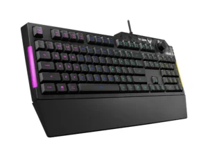 ASUS TUF Gaming K1 là bàn phím chơi game mang lại hiệu năng vượt trội và độ bền thách thức thời gian. Bàn phím được trang bị các phím bấm có độ phản hồi êm ái với mỗi lần nhấn. Các phím bấm này được đặt trong một khung chống thấm nước 300 ml, được gia cường bằng một lớp phủ chuyên dụng và được chứng nhận đáp ứng hoạt động trong môi trường khắc nghiệt. K1 cũng được trang bị đèn RGB tùy chỉnh và các thanh đèn gắn cạnh bên để thể hiện phong cách cá nhân, núm âm lượng chuyên dụng để điều khiển dễ dàng, nhanh chóng và phần đệm kê cổ tay tiện dụng để mang lại sự thoải mái dài lâu.